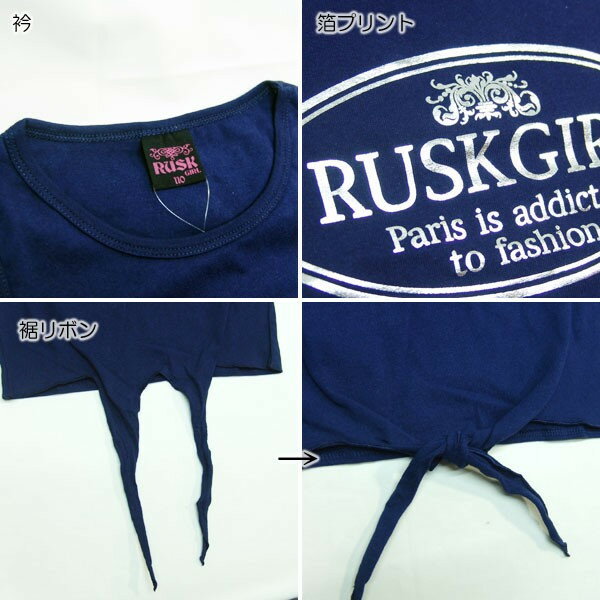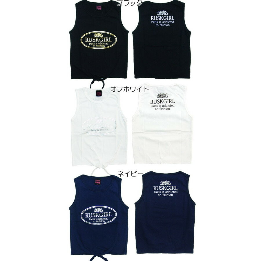 【ブランド:RUSKGIRL】 【キッズ プリントタンクトップ】 箔プリントのロゴがお洒落な1枚! 裾のリボンでこなれた印象に☆